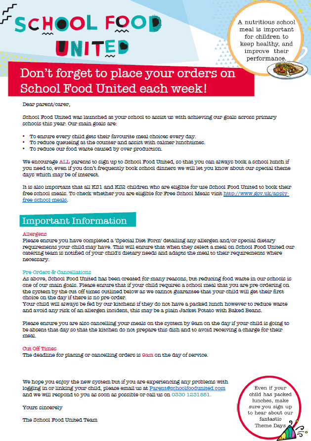 All meals must be booked online in advance - this applies to every school dinner, including Free School Meals and Universal Free School Meals.